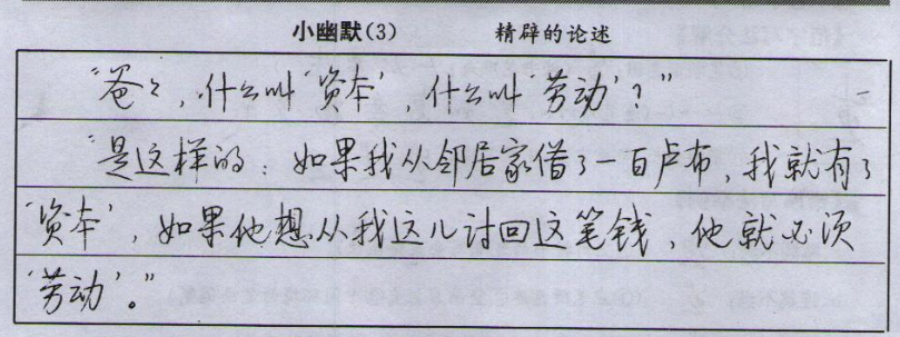 “是这样的:如果我从邻居家借了一百卢布,我就有了‘资本’,如果他想从我这儿讨回这笔钱,他就必须‘劳动’。”