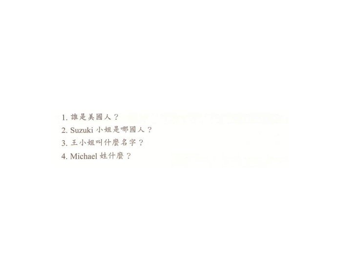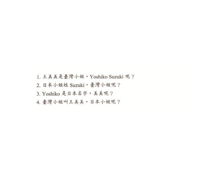 您,貴,姓,李,先,生,王,我,叫,好,是,美,國,人,嗎,不,英,你,什,麼,名,字,哪,呢,中,他,她,誰,台,臺,灣,華