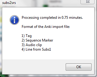 crt32 Posted May 30, 2015 at 08:58 AM Report Posted May 30, 2015 at 08:58 AM Set the second field to SequenceMarker (you set it to <ignored>), just as subs2srs told you to do. Even if you won't use this field in the future, Anki needs it as sort of unique identifier. Quote