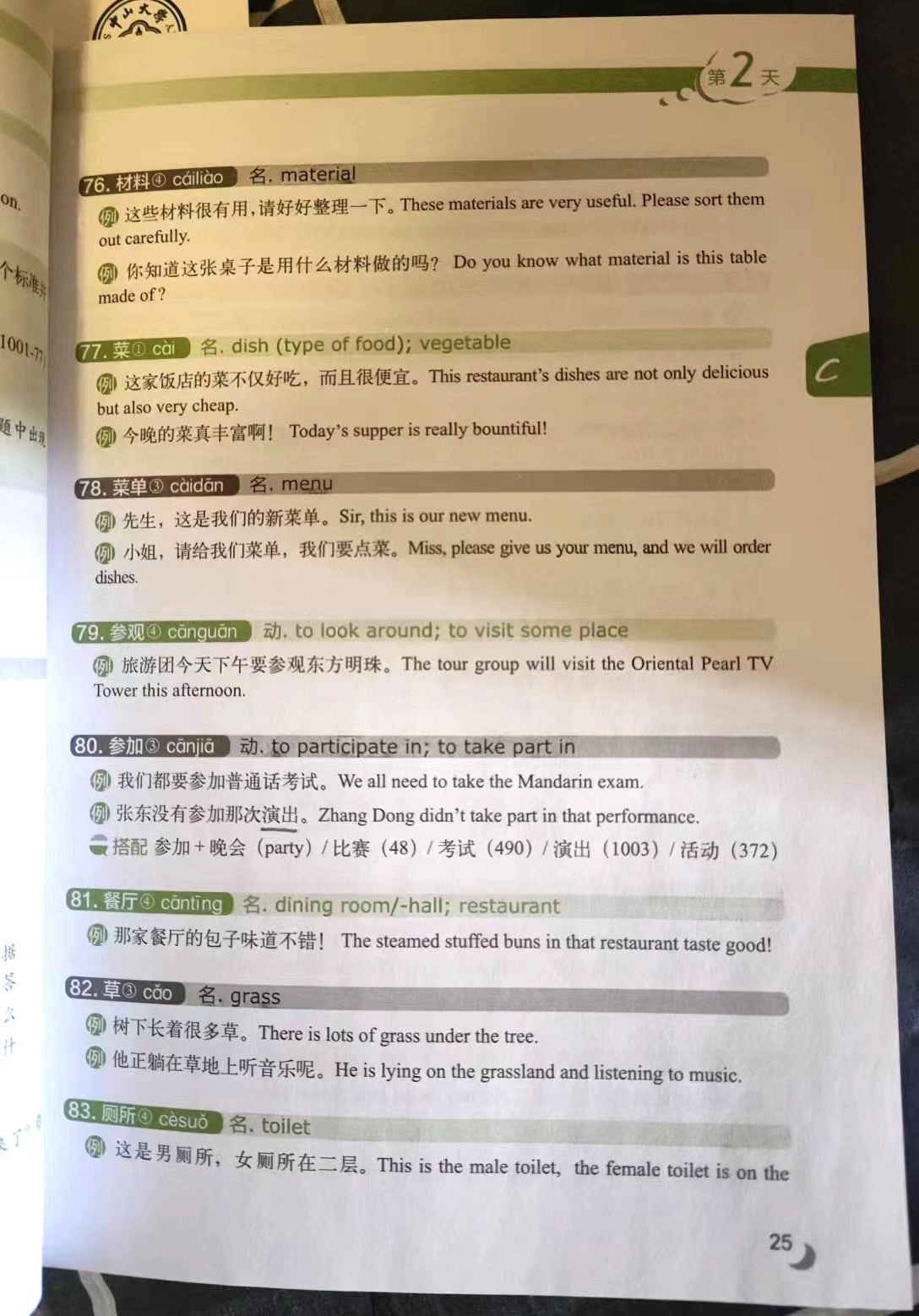 Flickserve Posted November 5, 2023 at 12:10 PM Report Posted November 5, 2023 at 12:10 PM On 11/5/2023 at 1:17 PM, suMMit said: 2. I asked an Italki teacher who Ive studied with on and off for 2 years: "What would you say are my two biggest strengths and my two biggest weaknesses?". For the weak points, she said "word choice"(ie using 电视剧 rather than 节目, or not remembering how to express "body weight" etc.). But she said the absolute biggest is VERBS - using the wrong verb 带 vs 拿, or wrong form 帮助 vs 帮忙, using verb compliments, verb and 地/得 了/着/过,etc. She actually mentioned Grammar patterns as a strength of mine, but need to focus on verbs and words. So with that in mind I found a book to focus on Vocab: Vocabulary Master Hsk 1-4 词汇宝典. I like it because I know the meaning all of the words in the book, there's virtually no new vocab to me other than a few incidentals in example sentences. The example sentences seem to go out of their way to use words from earlier pages and almost all are hsk 1-4 with a few hsk 5 or non hsk words. Some nice 补充 information, collocations, synonyms / antonyms, no pinyin other than the keyword, example sentences all use basic hsk 1-4 grammar points. English versions of sentences often have a Chin-glish feel to them, making it more intuitive to translate, not sure if this was done by design or not. My methodology, mainly following the book's instructions: 1. read the word 2. read the English sentence, and try translating it into Chinese (which @sanchuan also mentioned in this thread as potentially useful) 3. read the Chinese sentence 4. decide if my translation was the same, flawed, or different but also correct 5. "memorize" the book's sentence until I can say it smoothly out loud without reading it 6. if suitable, substitute words to slightly change the meaning 7. on to the next word I have found this to be hard work and again "boring". But then, I wonder, is it boring or HARD? An hour of it and I'm definitely exhausted. But I'm finding my translations getting better and better. I'm seeing words creep into my output that I wasn't using much before. So I think it's worthwhile. I'm giving extra focus to every verb. I think it's a well put together book and 410 pages long. Does this book also have audio? In practice, it’s not a big deal because one could always ask a native speaker to do a recording. Point 3 of your methodology - you’re reading the Chinese . Would it be more effective to have just a voice recording without the visual input assuming that your reading of Chinese is already pretty strong? Quote