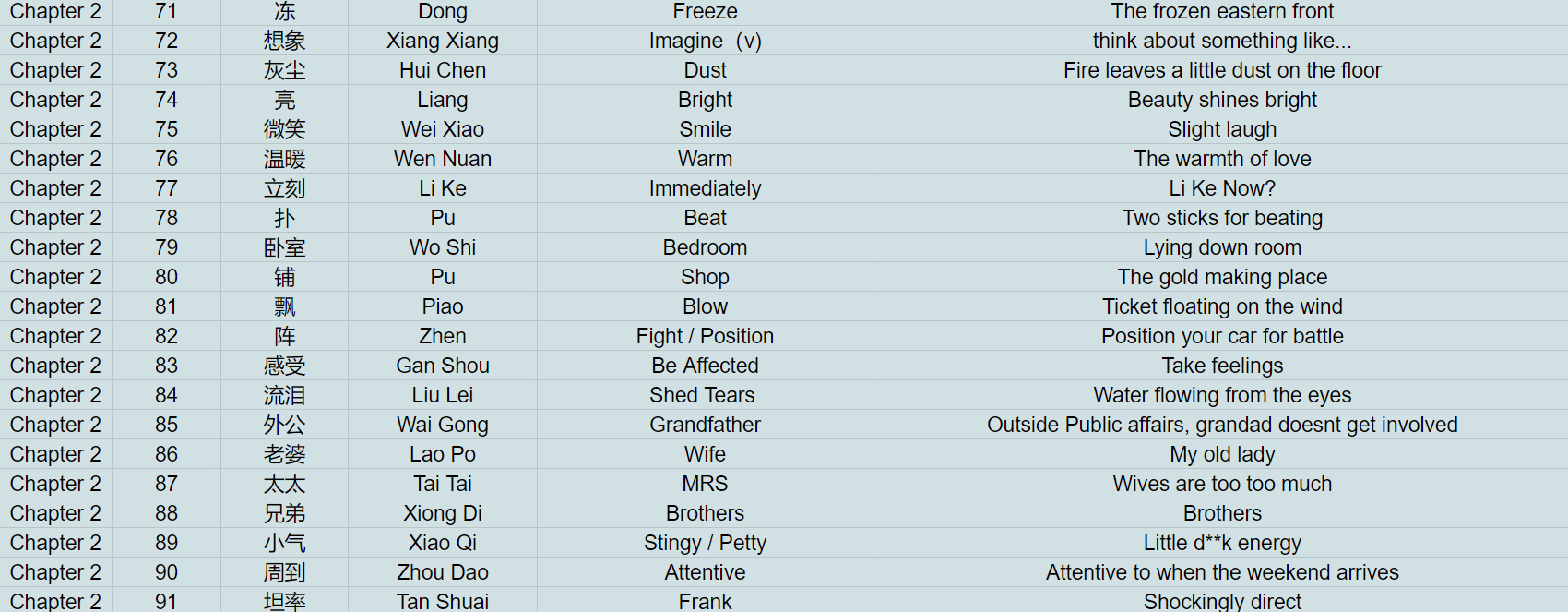 I didn't get too much time to study this week, limited to just 2-3 hours at most. That being said, it's still decent progress. I have been through this textbook before in the past and familiar with some of the characters at the start of the textbook, so I expect the progress to slow as the weeks go past. It should also be noted that I use Chinese everyday with my friends so some of the vocabulary comes easier to me, as it might be words I already use on a day to day basis.