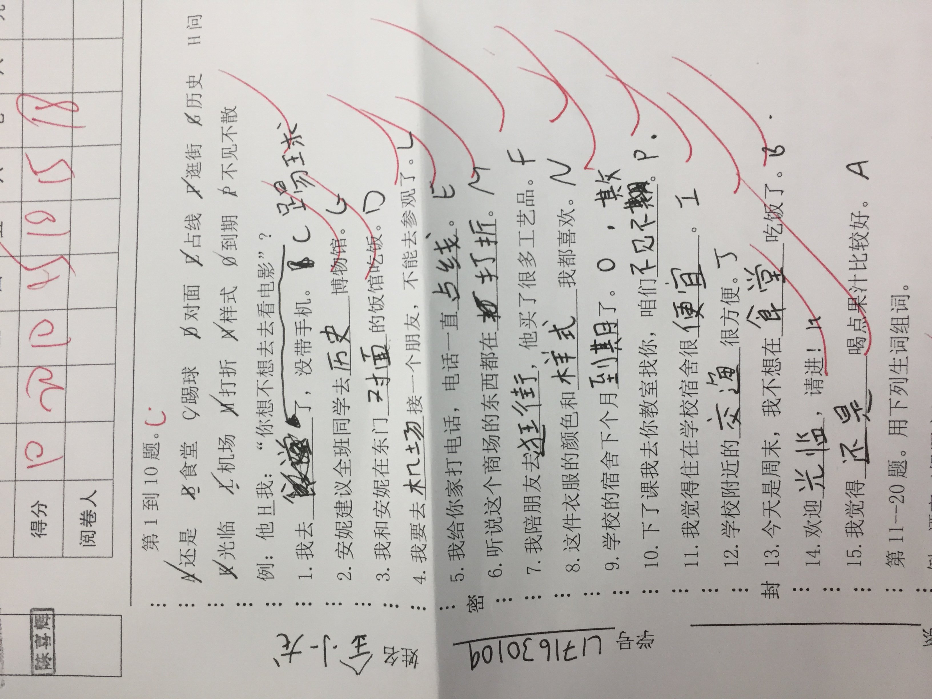 阅读 - No significant problems here.  I know I made some small mistakes here and there but I don't think there was anything huge.  Some of the questions were linking characters together to form words, writing the pinyin for characters and then making our own words (I messed up a tone or two here), various comprehension questions, and then a true/false set of questions based on a longer text.