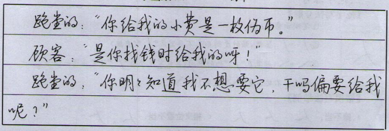 跑堂的:“你明明知道我不想要它。干嘛偏要给我呢?”
