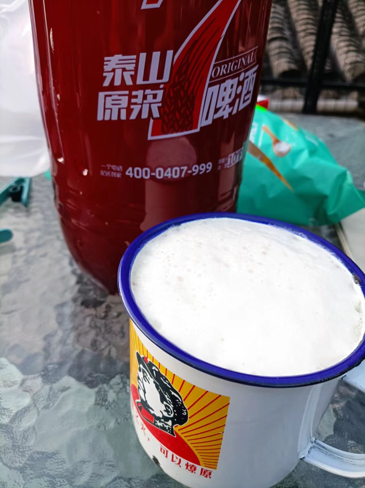 Another wheat beer that's very popular, 泰山 Taishan from Shandong, pretty nice fresh wheat beer, 60kuai for 2 liters: